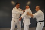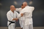 Again borrowing from Hanshi McCarthy, each class starts by practicing defences against habitual acts of physical violence (HAPVs). We train for early identification of attacks, and muscle memory in defensive applications. Simple, set, continuous defensive exercises such as tegumi and uchikomi are a core method for achieving this. The live nature and intensity of tegumi, randori, newaza (ground grappling) and kumite keeps students on their toes and teach students the principles of balance, controlling the opponent’s elbow and coordination of the entire body. These drills are flexible enough to adapt to individual needs or desired outcomes.